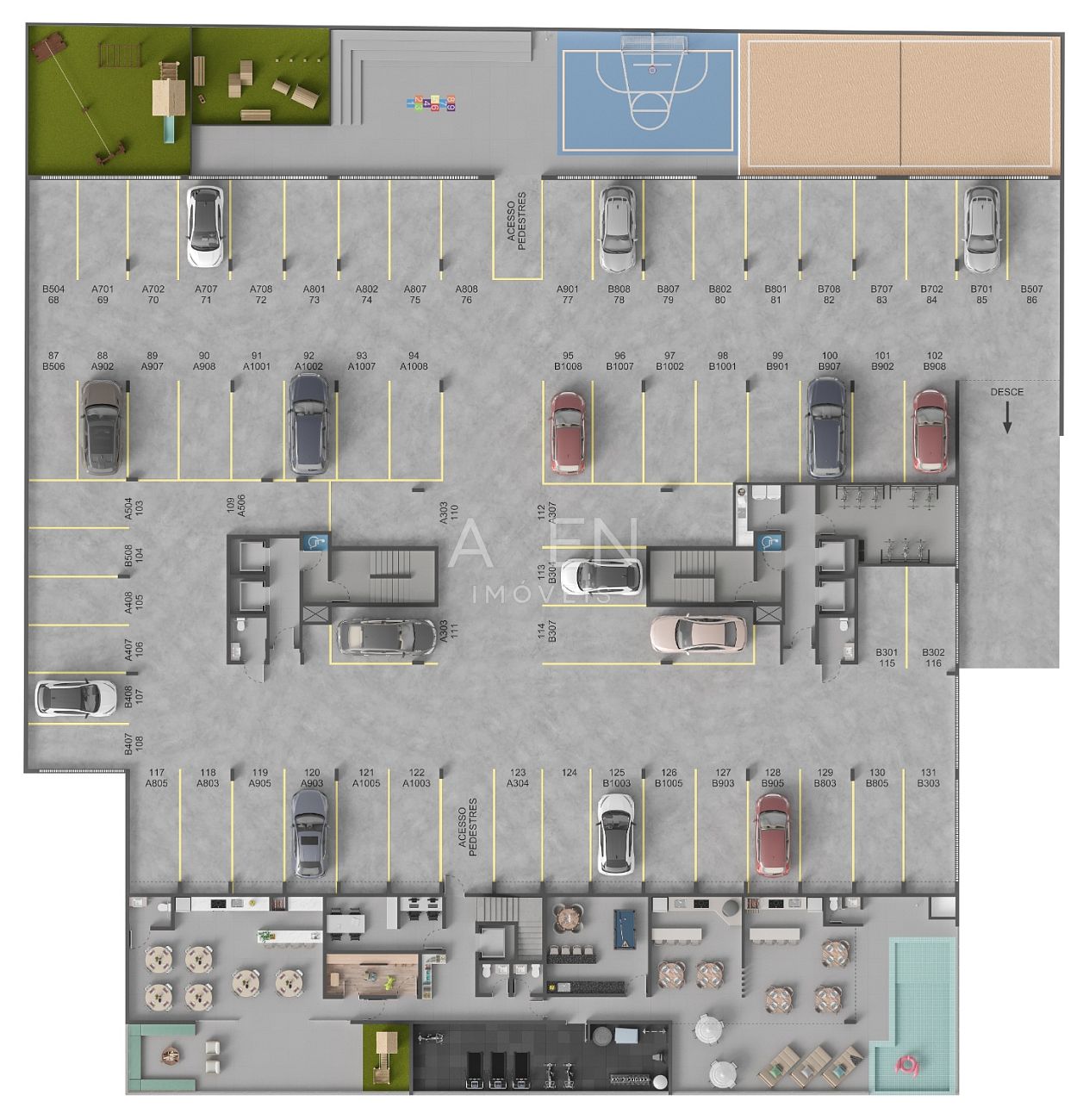 O residencial conta com uma estrutura completa de lazer: academia, bicicletário, brinquedoteca, piscinas adulto e infantil com borda infinita, quadras de Beach Tennis e Street Ball, espaço gourmet, salão de festas com terraço e pub com jogos.